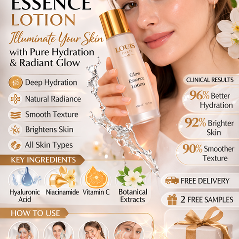 Louis Paris Glow Essence Lotion is an advanced hydrating skincare formula created to enhance skin brightness and restore healthy luminosity.
