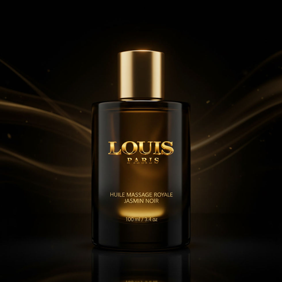 Step into the world of dark elegance with Louis Paris Huile Massage Royale – Jasmin Noir.